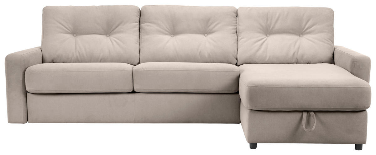 Sehenswerter Hingucker Die zurückgenommene Farbgebung des Polstermöbels in Hellbraun kreiert eine ansprechende Gestaltung und integriert sich geschmackvoll in diverse Interior-Konzepte. Standfest und stylish komplettieren die runden Füße in Schwarz das Design.