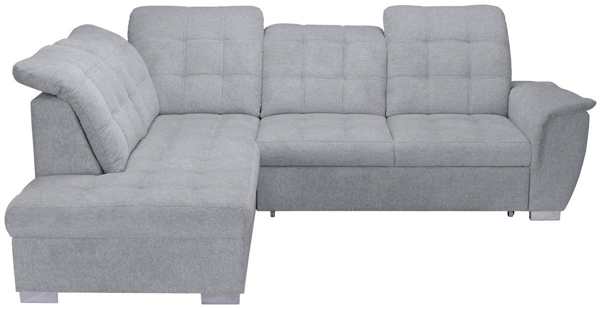 Ihr hellgraues Ecksofa mit Chenille-Bezug verführt dazu, behaglich die verdiente Me-Time zu genießen!
