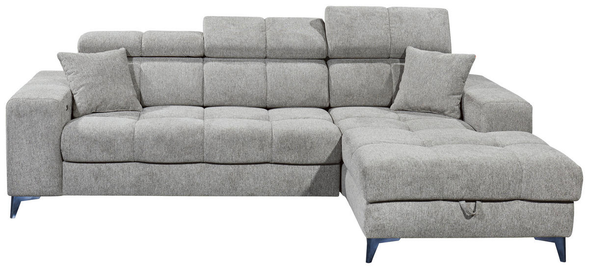 Ab auf Ihr hellgraues Ecksofa mit Chenille-Bezug!
