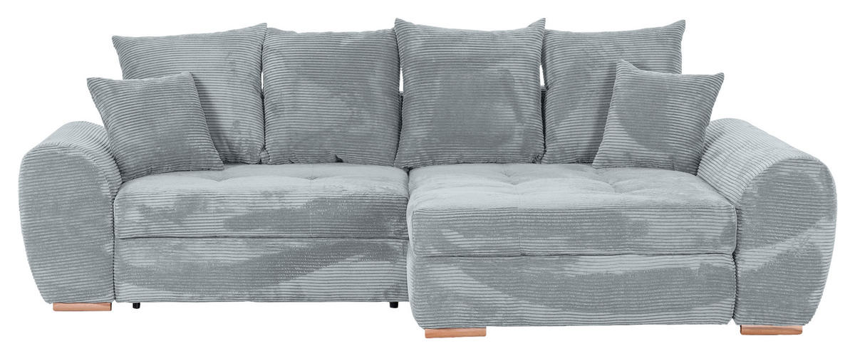 Können Sie sich etwas Besseres vorstellen als auf diesem hellgrauen Ecksofa mit Cord-Bezug alles um sich herum zu vergessen?