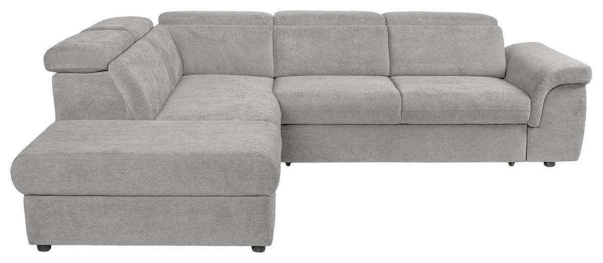 Wenn dieses hellgraue Ecksofa mit Flachgewebe-Bezug bei Ihnen einzieht, übernimmt Behaglichkeit das Kommando!