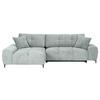 Als treue Begleitung für wonnige Time-outs daheim gesellt sich dieses hellgraue Ecksofa mit Flachgewebe-Bezug gerne zu Ihnen!