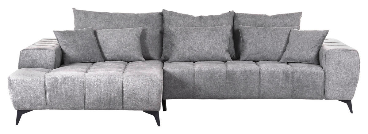 Als treue Begleitung für wonnige Time-outs daheim gesellt sich dieses hellgraue Ecksofa mit Flachgewebe-Bezug gerne zu Ihnen!