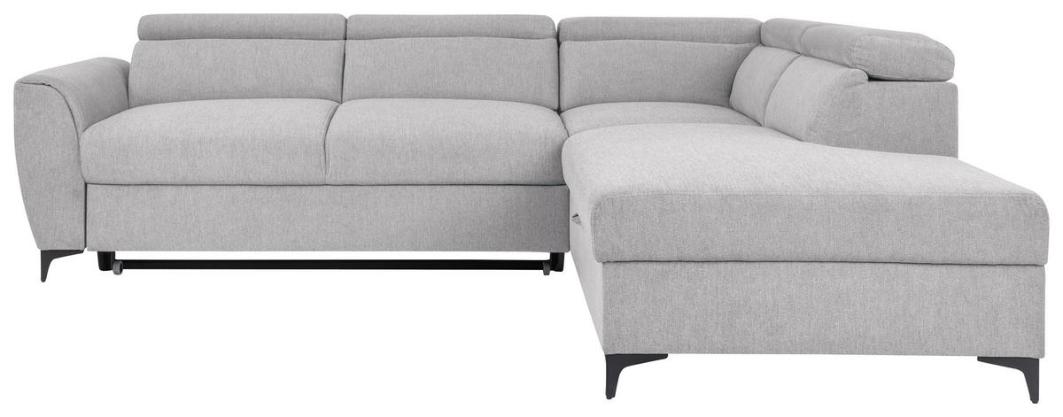 Dieses Design kann sich sehen lassen Ein harmonisches Ambiente, das unterschiedliche Einrichtungstrends geschmackvoll abrundet, kreiert das Polstermöbel mit seiner dezenten Farbgebung in Hellgrau. Perfektioniert wird das Design durch die Winkelfüße aus pulverbeschichtetem Stahl in Schwarz.