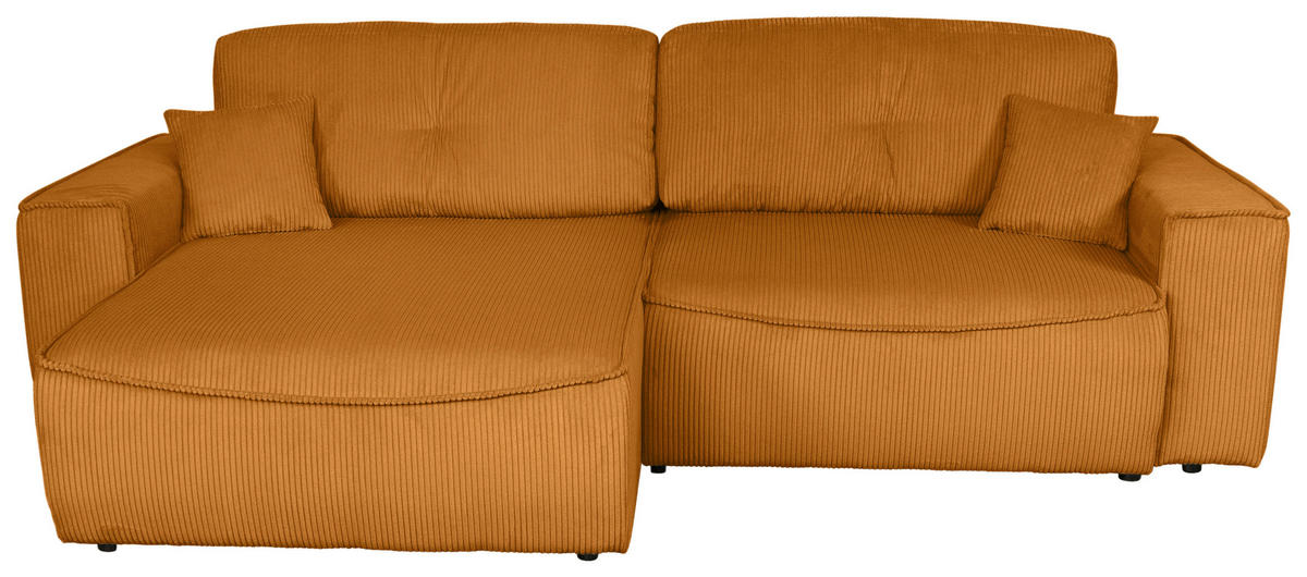 Genießen Sie Ihr Rendezvous mit der wohligen Unbeschwertheit des Seins auf diesem kupferfarbenen Ecksofa mit Cord-Bezug!