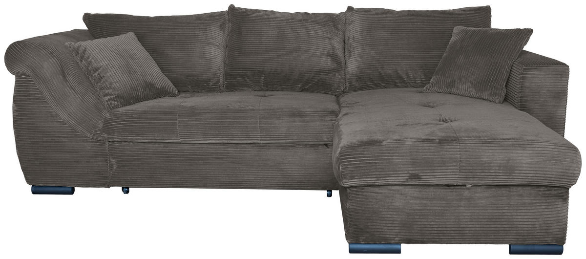 Carryhome ECKSOFA Mokka Cord Zierkissen, Rückenkissen, Bettkasten, Schlaffunktion, Rücken echt, Liegefläche im Originalstoff