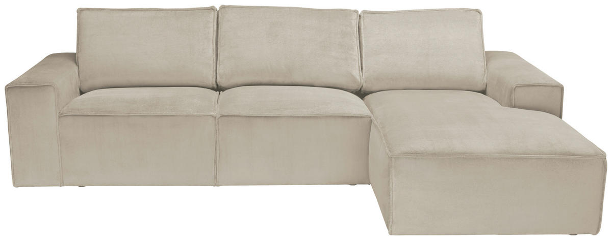 Rein in die Komfortzone: Dieses naturfarbene Ecksofa mit Chenille-Bezug entführt Sie auf ein traumhaftes Terrain zum geruhsamen Durchatmen!