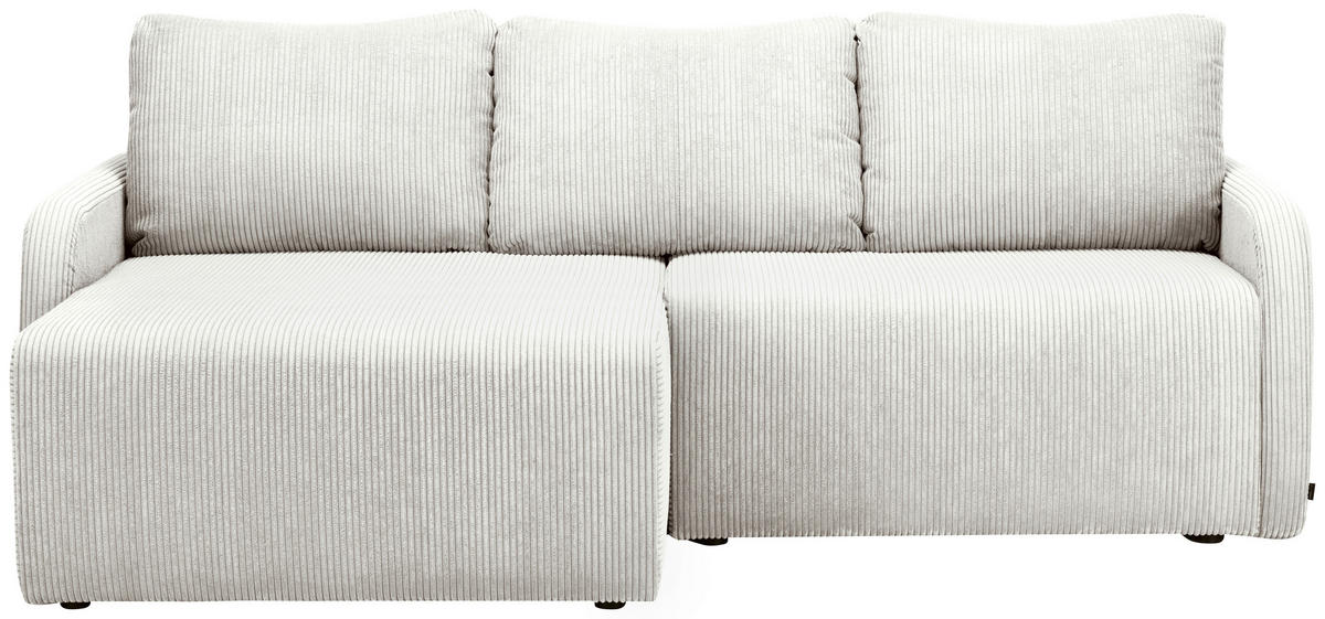 Ihr Aushängeschild, was Wohnzufriedenheit anbelangt: ein naturfarbenes Ecksofa mit Cord-Bezug, das es in sich hat!