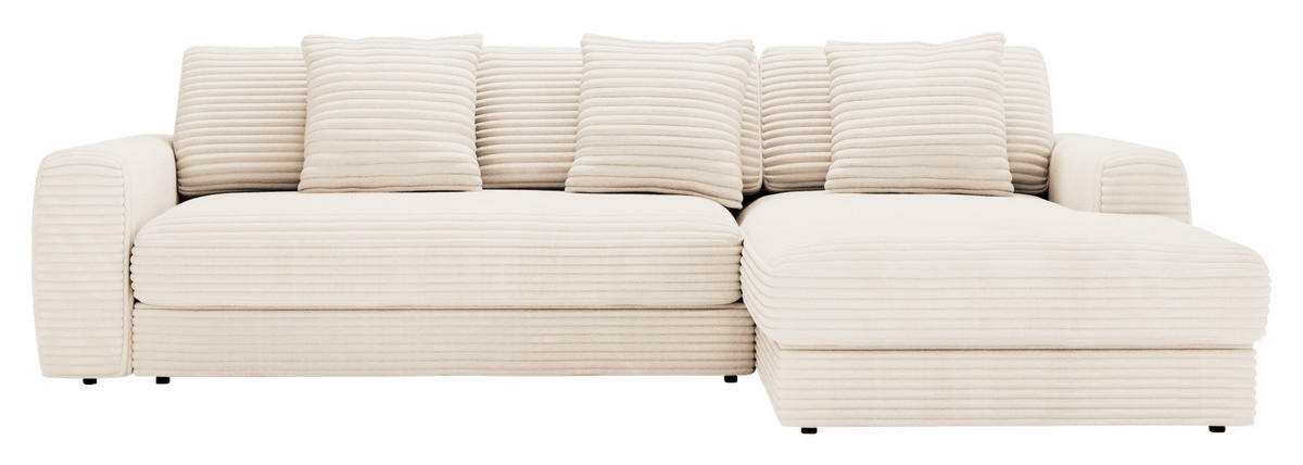Als treue Begleitung für wonnige Time-outs daheim gesellt sich dieses naturfarbene Ecksofa mit Cord-Bezug gerne zu Ihnen!