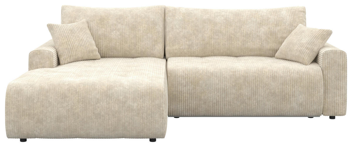 Genießen Sie Ihr Rendezvous mit der wohligen Unbeschwertheit des Seins auf diesem naturfarbenen Ecksofa mit Webstoff-Bezug!