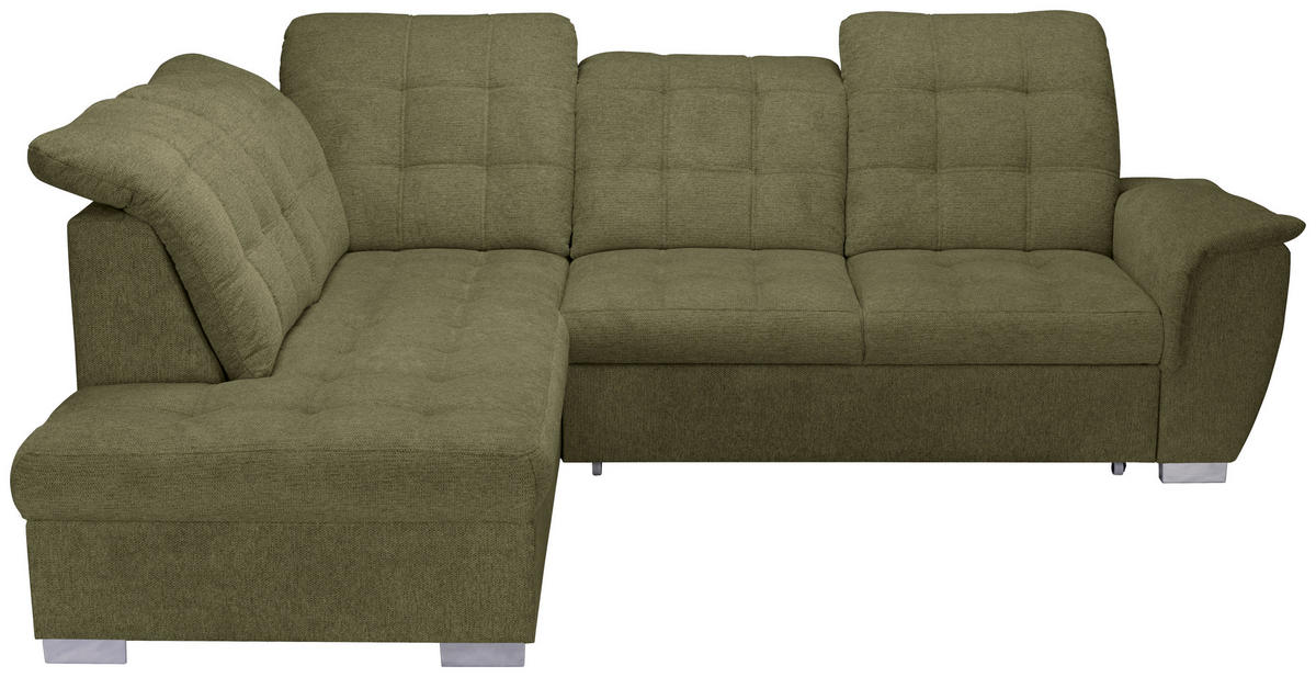 Eine Sonderportion Wohnlichkeit schenkt Ihnen dieses olivgrüne Ecksofa mit Chenille-Bezug. Greifen Sie zu!