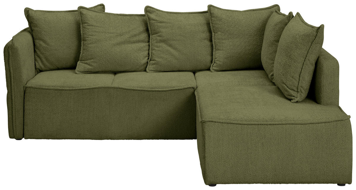 Ihr Aushängeschild, was Wohnlichkeit anbelangt: ein olivgrünes Ecksofa mit Chenille-Bezug, das es in sich hat!