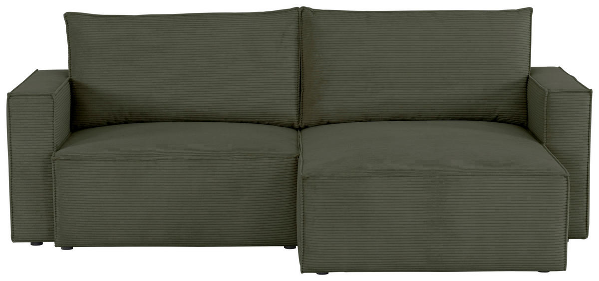 Wenn dieses olivgrüne Ecksofa mit Feincord-Bezug bei Ihnen einzieht, übernimmt Behaglichkeit das Kommando!