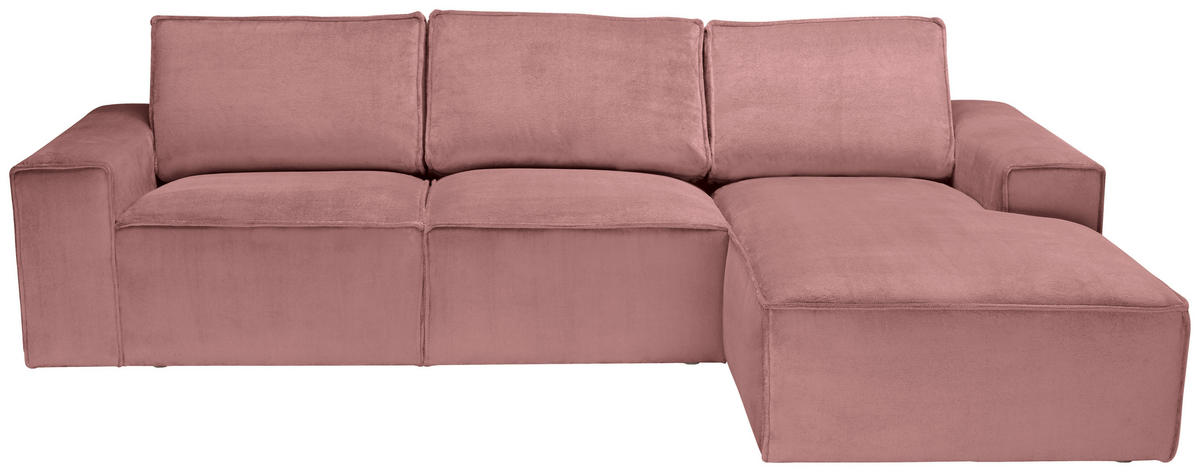 Ein It-Piece, das Ihren Erwartungen gerecht wird: Dieses rosafarbene Ecksofa mit Chenille-Bezug tut einiges fürs individuelle Wohnglück!