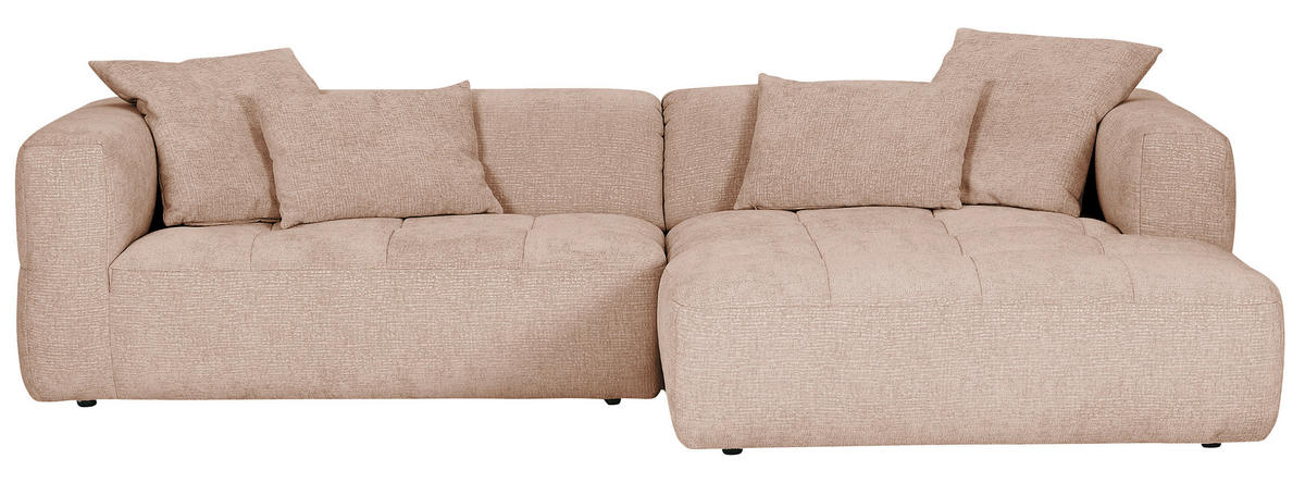 Eine Sonderportion Wohnglück schenkt Ihnen dieses rosafarbene Ecksofa mit Flachgewebe-Bezug. Greifen Sie zu!