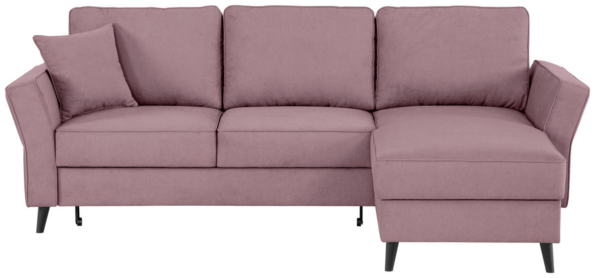 Mit diesem rosafarbenen Ecksofa mit Velours-Bezug landen Sie auf jeden Fall einen Volltreffer in Sachen Wohnzufriedenheit!