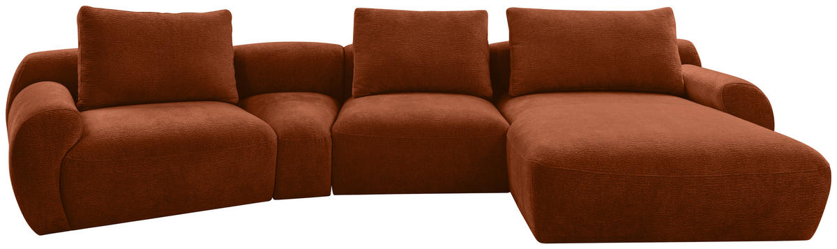 Ihr rostrotes Ecksofa mit Chenille-Bezug verführt dazu, behaglich die verdiente Me-Time zu genießen!