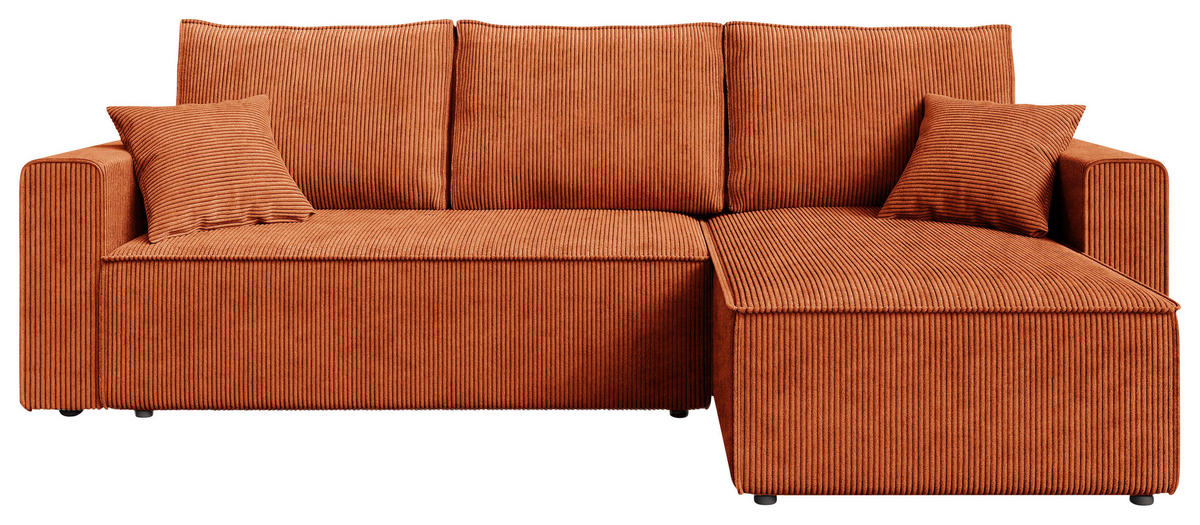 Daheim ist, wo dieses rostrote Ecksofa mit Cord-Bezug ist!