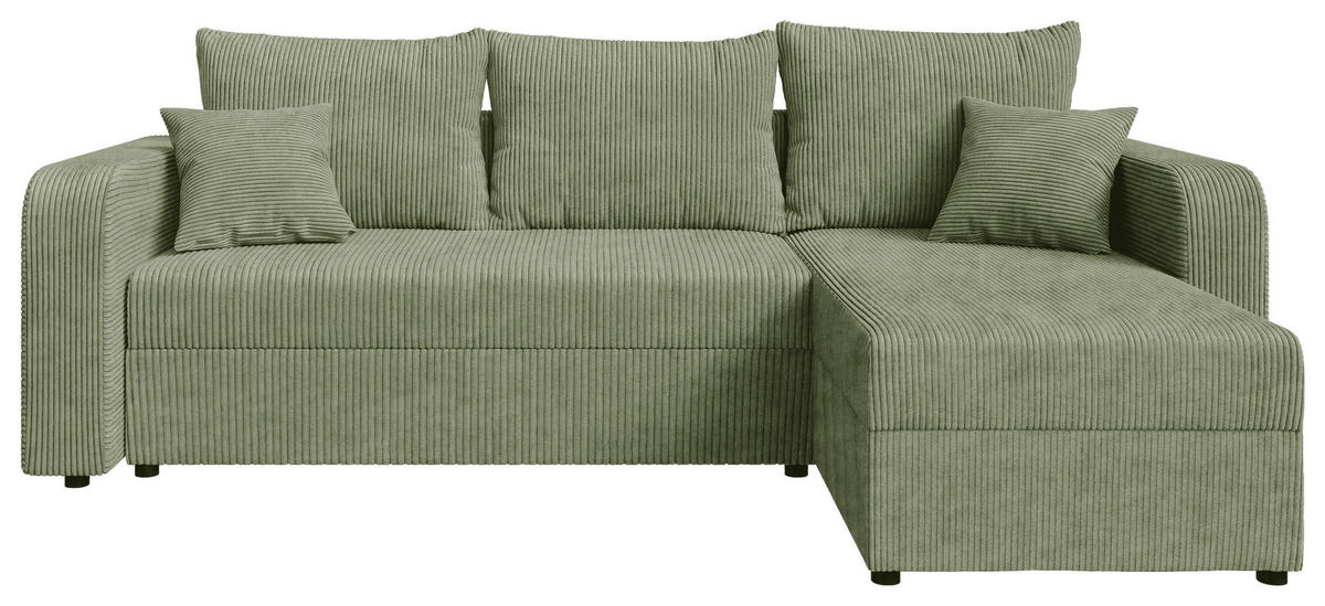 Dieses salbeigrüne Ecksofa mit Cord-Bezug zaubert Ihnen bei jeder Gelegenheit zum Ausspannen ein Lächeln ins Gesicht!