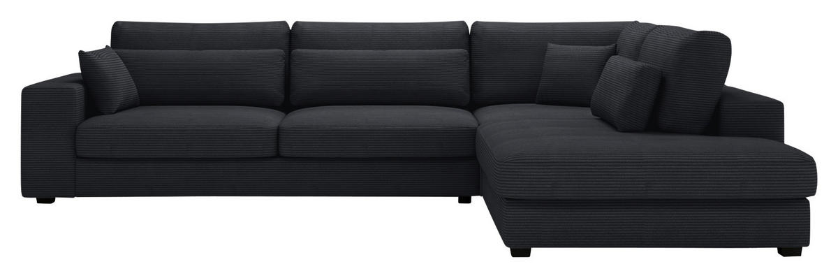Wenn dieses schwarze Ecksofa mit Cord-Bezug bei Ihnen einzieht, übernimmt Behaglichkeit das Kommando!