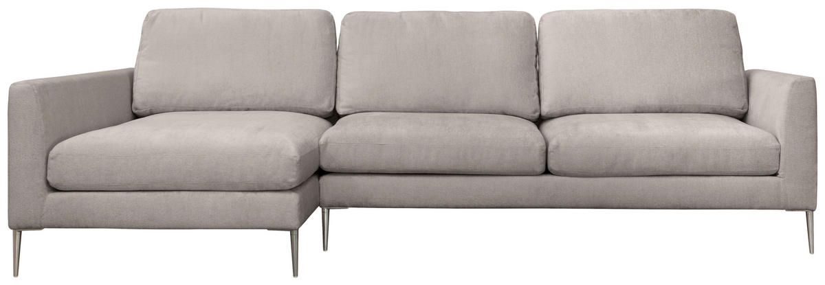 Wo eine ausgeglichene Life-Balance und häusliches Wohlempfinden gefragt sind, führt an diesem taupefarbenen Ecksofa mit Chenille-Bezug kein Weg vorbei!