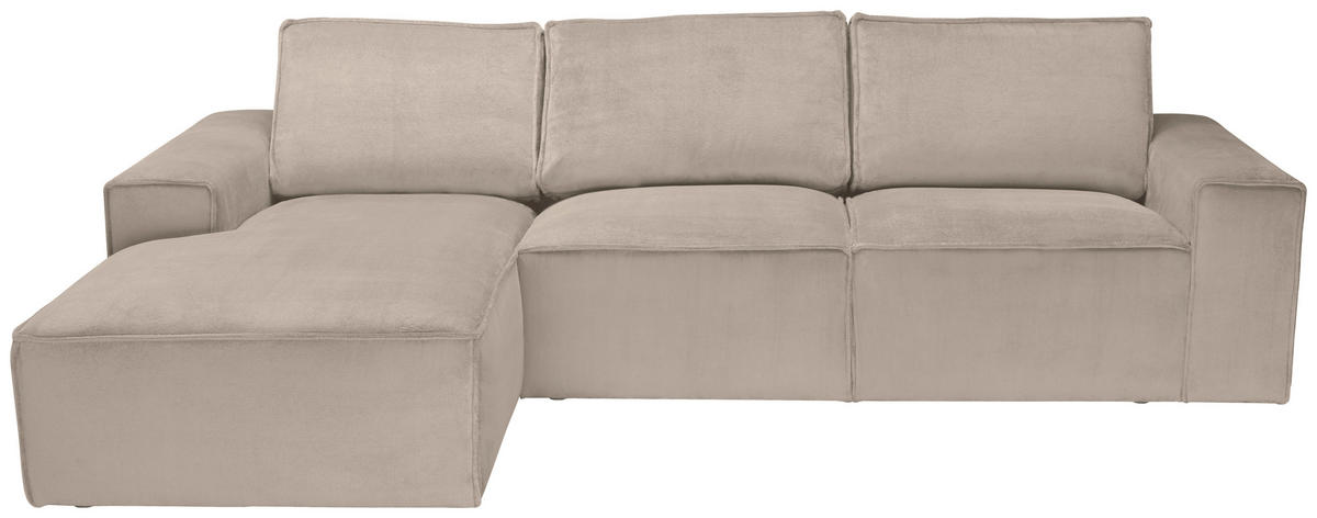 Können Sie sich etwas Besseres vorstellen als auf diesem taupefarbenen Ecksofa mit Chenille-Bezug alles um sich herum zu vergessen?