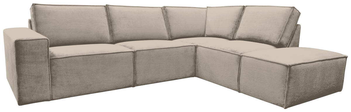 Wenn dieses taupefarbene Ecksofa mit Chenille-Bezug bei Ihnen einzieht, übernimmt Behaglichkeit das Kommando!
