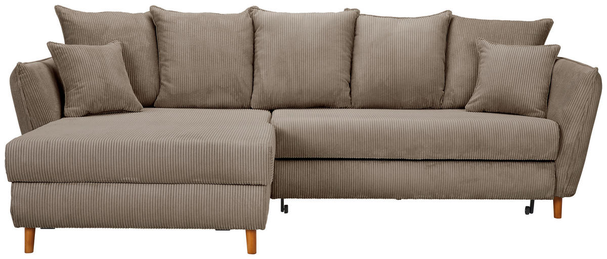 Eine Sonderportion Behaglichkeit schenkt Ihnen dieses taupefarbene Ecksofa mit Cord-Bezug. Greifen Sie zu!