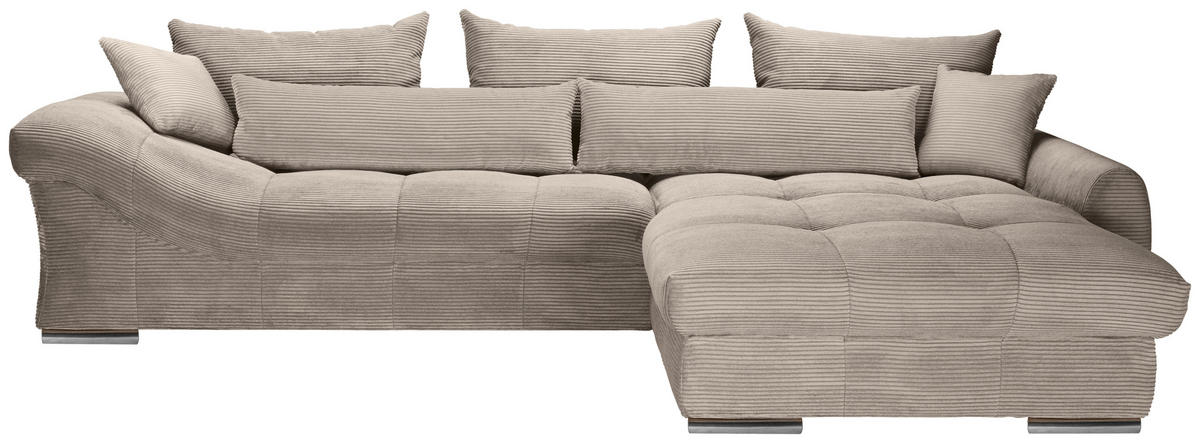 Ihr Aushängeschild, was Wohnzufriedenheit betrifft: ein taupefarbenes Ecksofa mit Cord-Bezug, das es in sich hat!