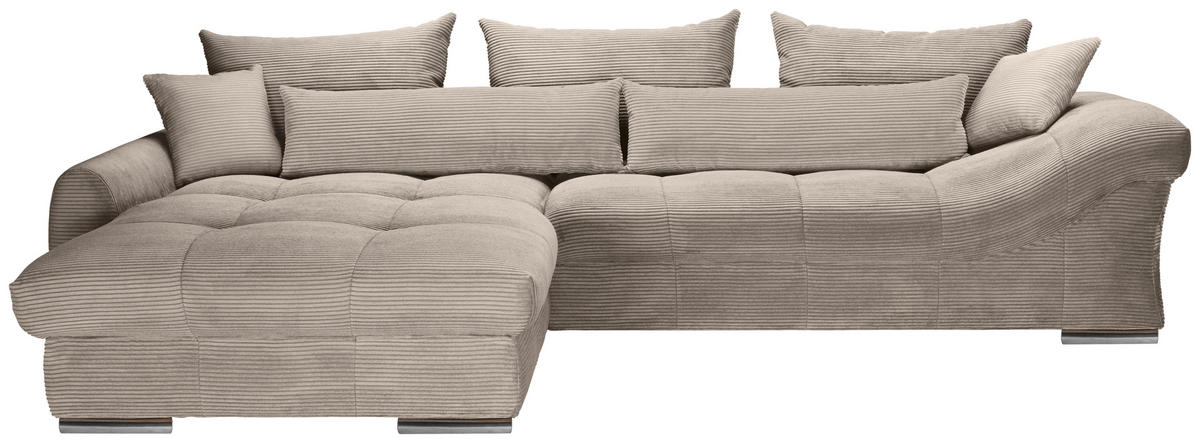 Können Sie sich etwas Besseres vorstellen als auf diesem taupefarbenen Ecksofa mit Cord-Bezug alles um sich herum zu vergessen?