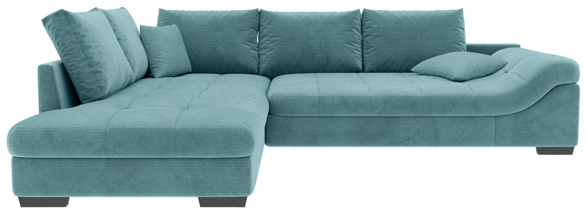 Ihr Aushängeschild, was Behaglichkeit betrifft: ein türkises Ecksofa mit Cord-Bezug, das es in sich hat!