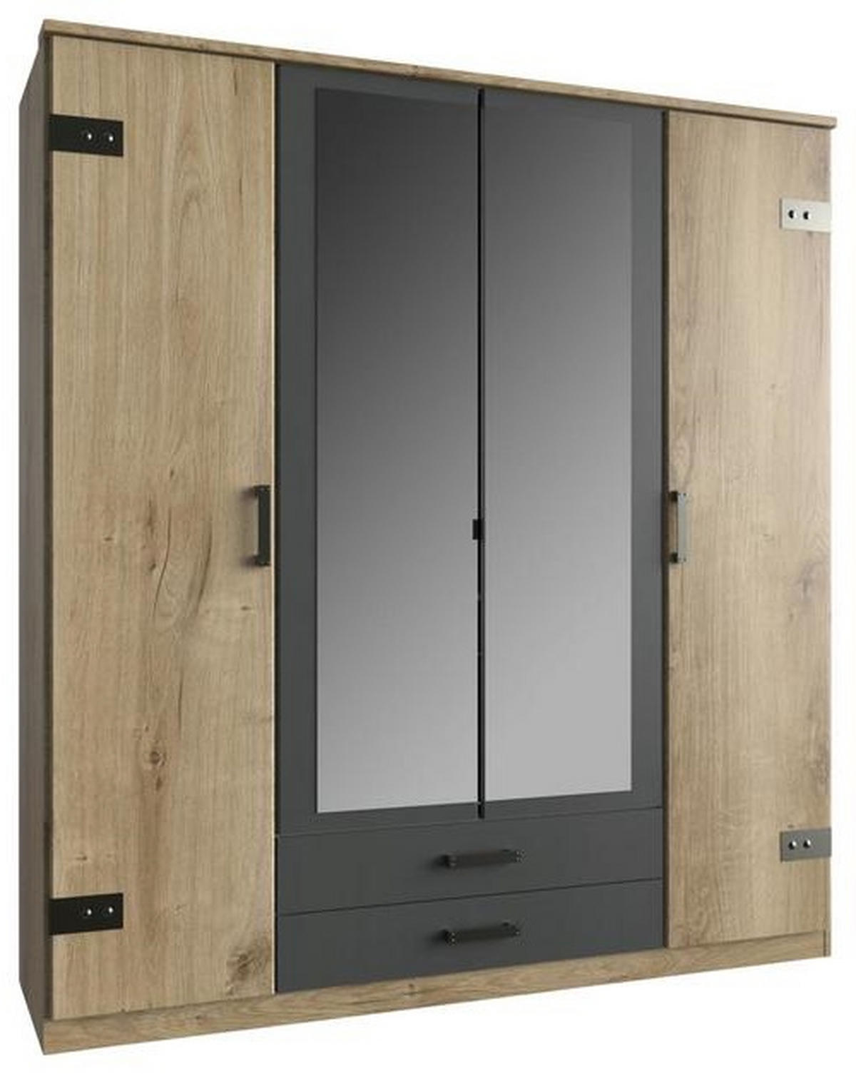 Carryhome KLEIDERSCHRANK in Graphitfarben, Plankeneiche, 4-türig