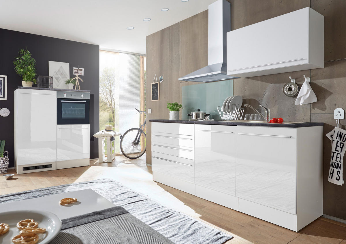 Küchenblock (ca. 200 cm breit) in Weiß: geschmackvoll Kochen