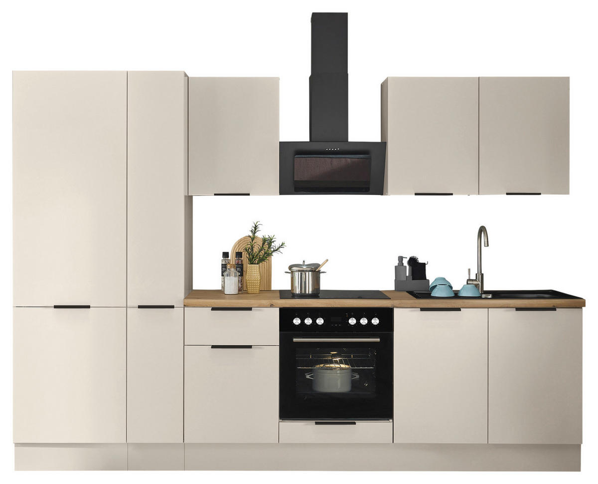 - Inkludierte Elektrogeräte: Backofen, Dunstabzugshaube, Kühl-Gefrierkombination, Induktionskochfeld