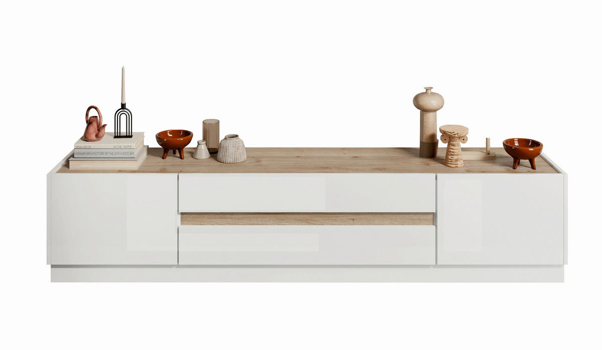 LOWBOARD  205/44/40 cm 2 Schublade(n) Beimöbel erhältlich, stehend  - Eichefarben/Weiß Hochglanz, MODERN, Holzwerkstoff (205/44/40cm) - CarryhomeCarryhome