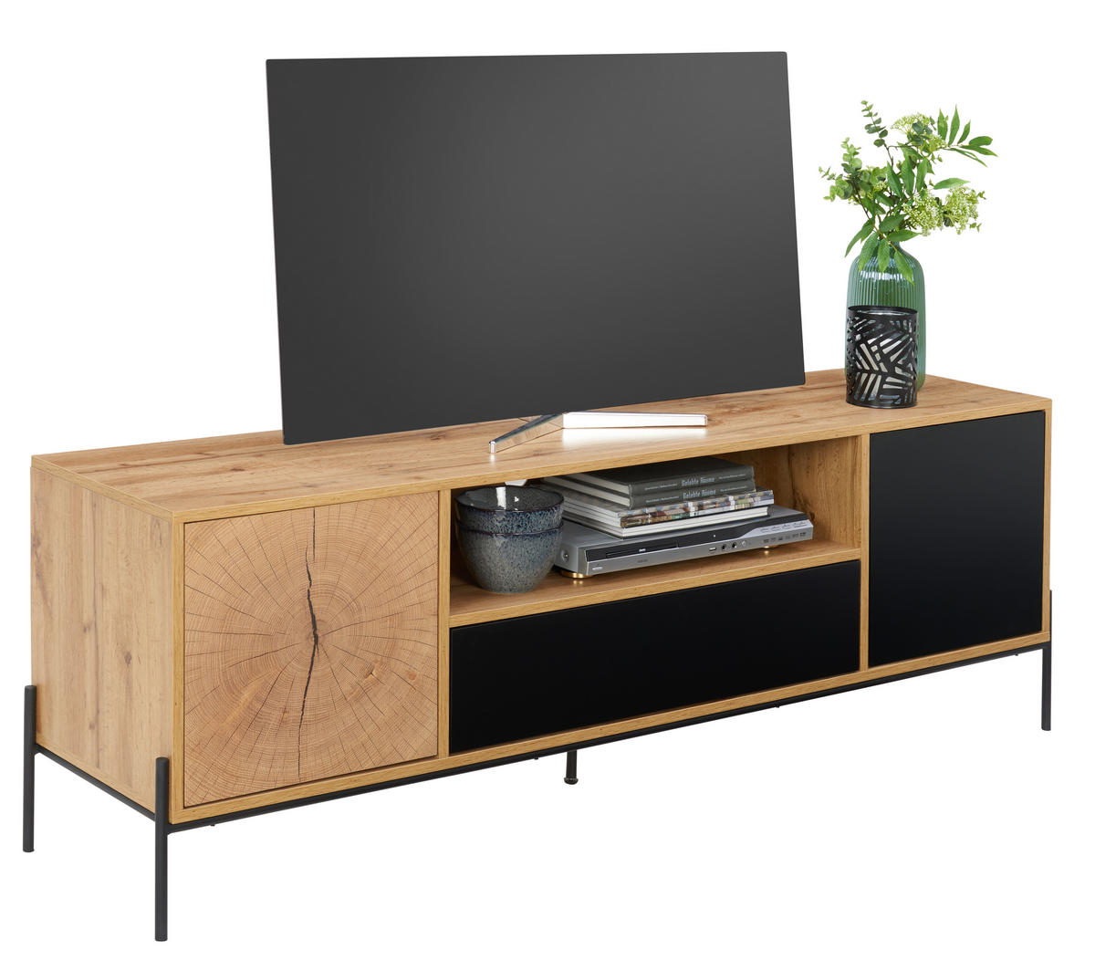 Lowboard in Eichefarben und Schwarz: zeitgemäße Wohnlichkeit