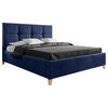 Dunkelblau inklusive Bettkasten begeistert als Ruhepol für entspannte Nächte.