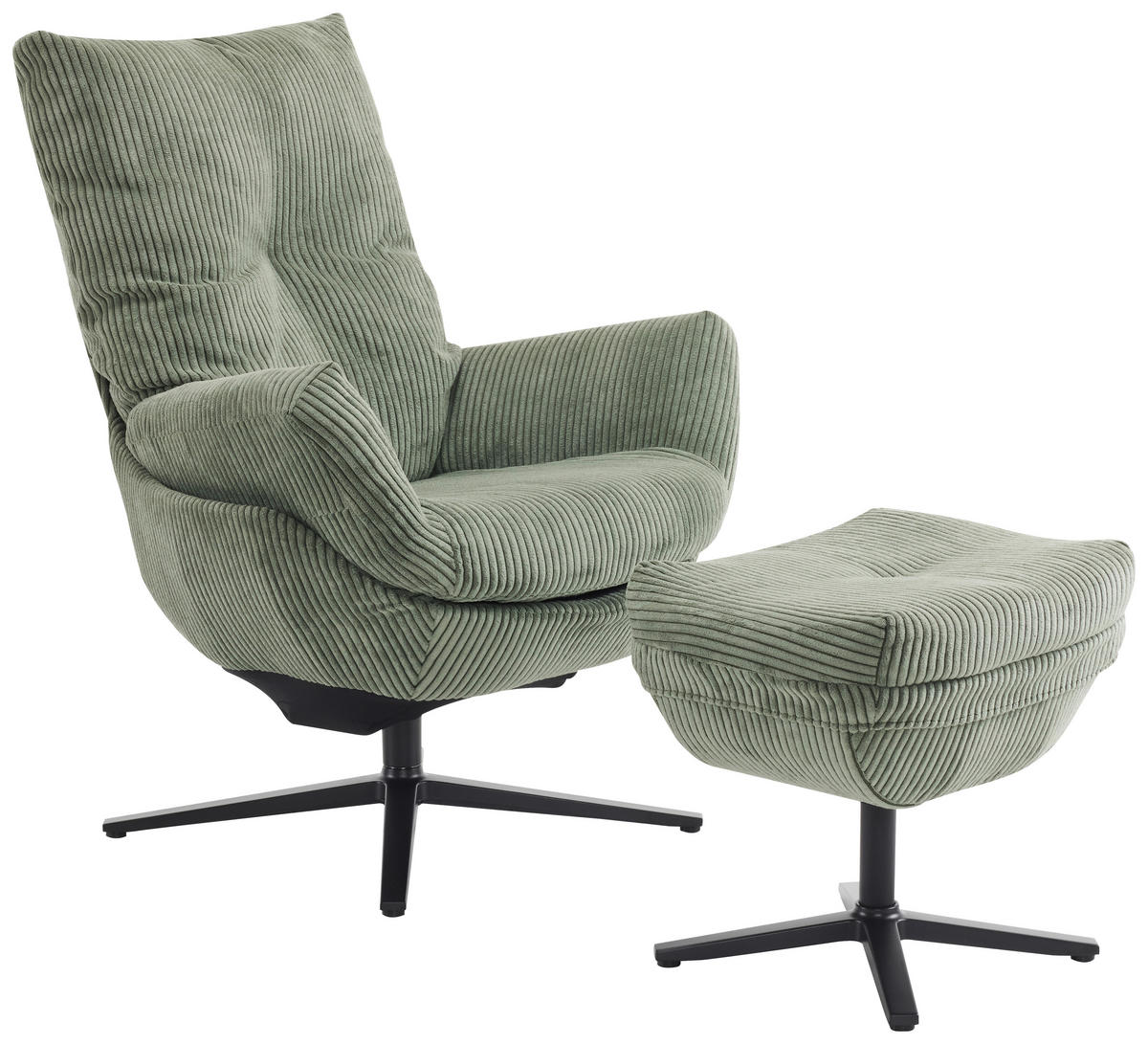 Ein Relaxsesselset mit Cord-Bezug in Grün & Schwarz, das begeistert
