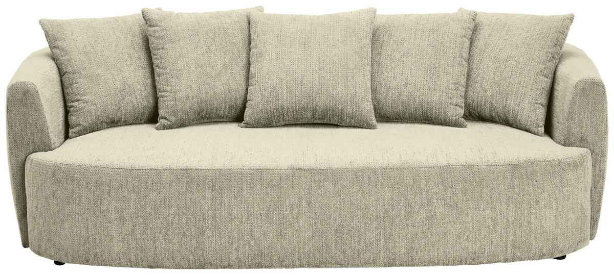 Genießen Sie Ihr Rendezvous mit der wohligen Unbeschwertheit des Seins auf diesem beigen Schlafsofa mit Chenille-Bezug!