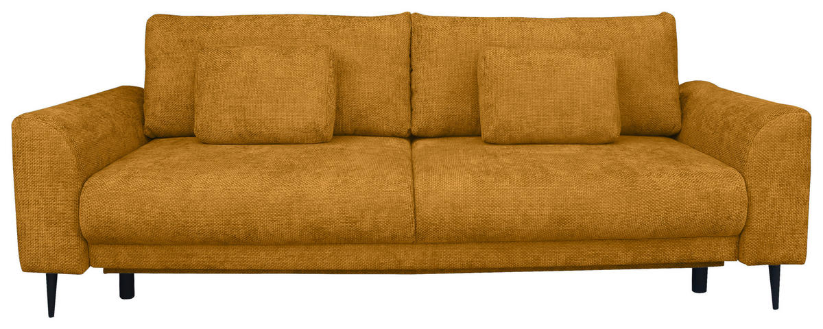 Wenn dieses gelbe Schlafsofa mit Chenille-Bezug bei Ihnen einzieht, übernimmt Behaglichkeit das Kommando!