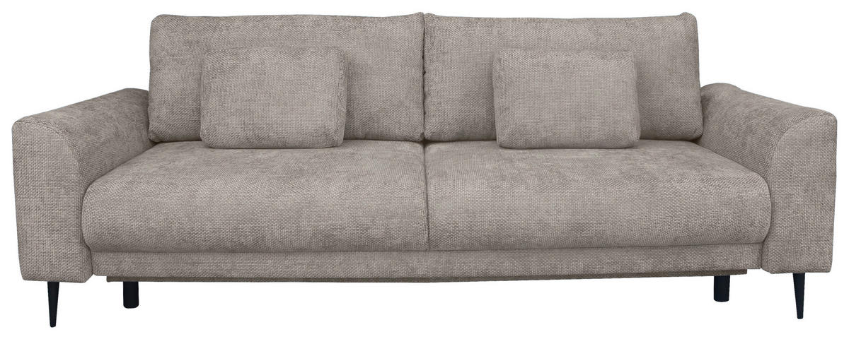 Makelloses Design Eine ansprechende sowie zu vielen Einrichtungskonzepten kombinierbare Optik erhält das Möbel durch das schlichte Kolorit in Greige. Stylishe Akzente setzen dazu die hohen, konischen Füße aus pulverbeschichtetem Stahl in Schwarz, deren Höhe zugleich eine Belüftung von unten ermöglicht.