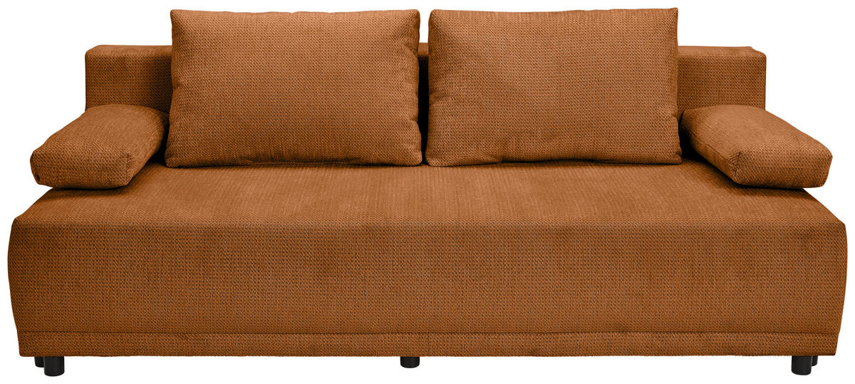 Dieses rostrote Schlafsofa mit Chenille-Bezug zaubert Ihnen bei jeder Gelegenheit zum Ausspannen ein Lächeln ins Gesicht!