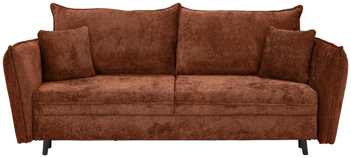 Wenn dieses terracottafarbene Schlafsofa mit Chenille-Bezug bei Ihnen einzieht, dreht sich alles um Behaglichkeit!
