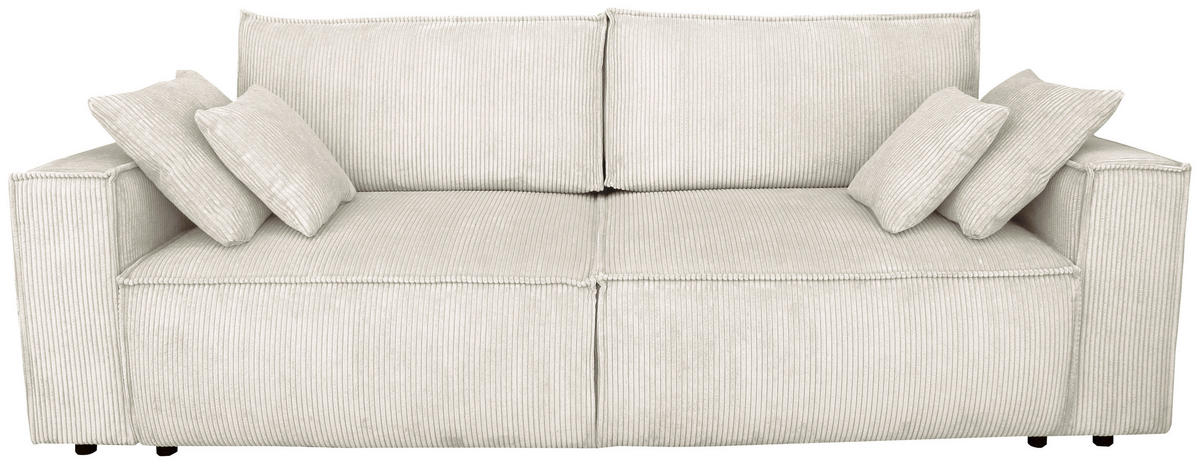 Genießen Sie Ihr Rendezvous mit der wohligen Unbeschwertheit des Seins auf diesem beigen Schlafsofa mit Cord-Bezug!