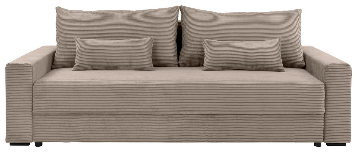 Ab auf Ihr beiges Schlafsofa mit Cord-Bezug und die ersehnte Me-Time genießen!