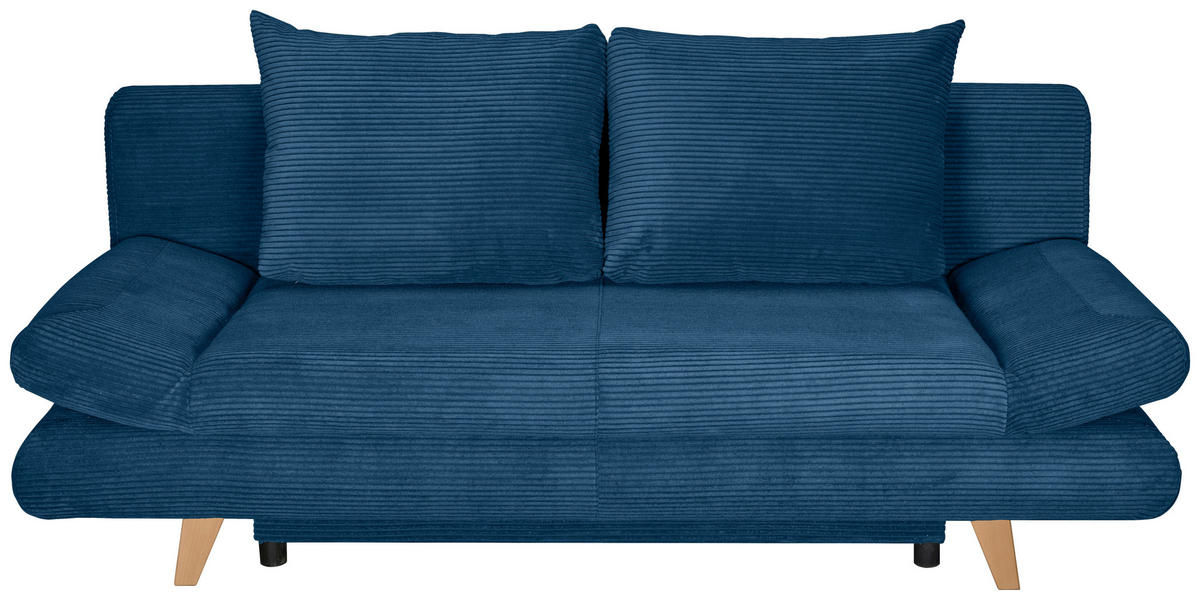Ihr blaues Schlafsofa mit Cord-Bezug verführt dazu, behaglich die verdiente Me-Time zu genießen!