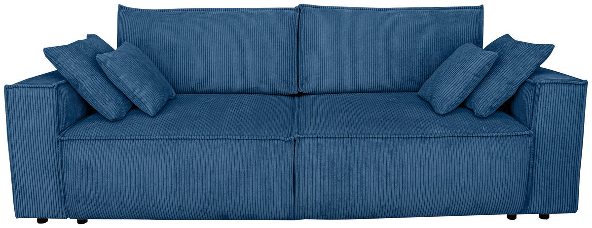 Wenn dieses blaue Schlafsofa mit Cord-Bezug bei Ihnen einzieht, übernimmt Behaglichkeit das Kommando!