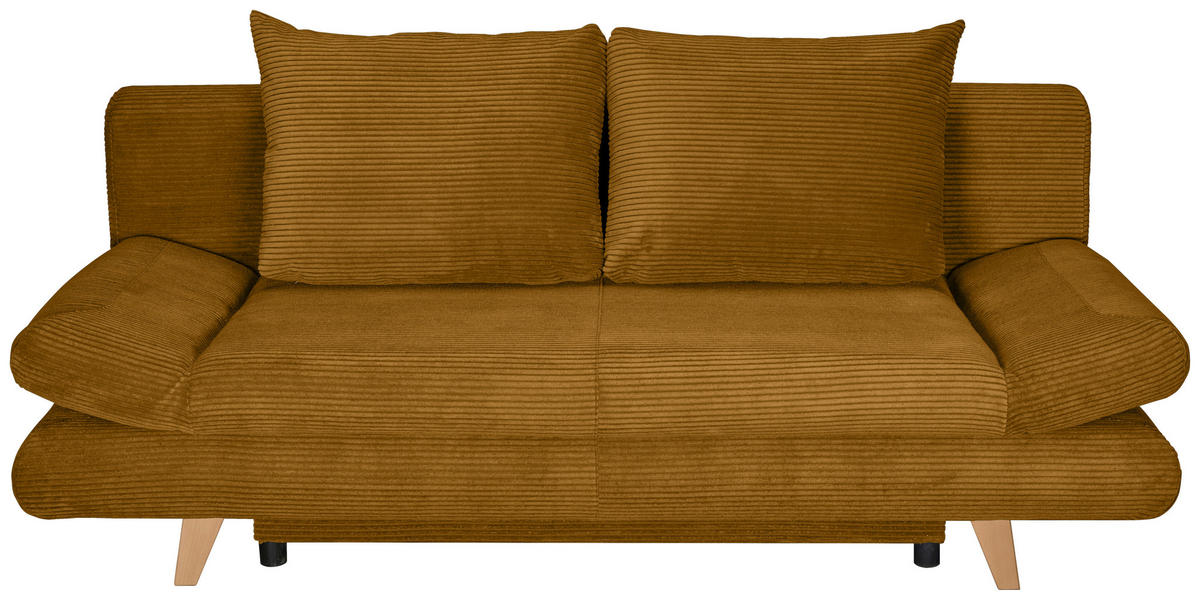 Wo eine ausgeglichene Life-Balance und häusliches Wohlempfinden gefragt sind, führt an diesem currygelben Schlafsofa mit Cord-Bezug kein Weg vorbei!