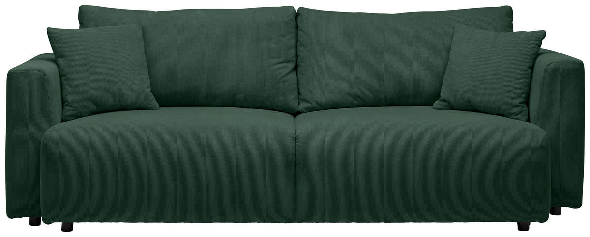 Absolut sehenswert Das ausdrucksstarke Kolorit in Dunkelgrün verhilft dem Polstermöbel zu einer schicken Optik. Für den Feinschliff setzen runde Füße in Schwarz stimmige Akzente.