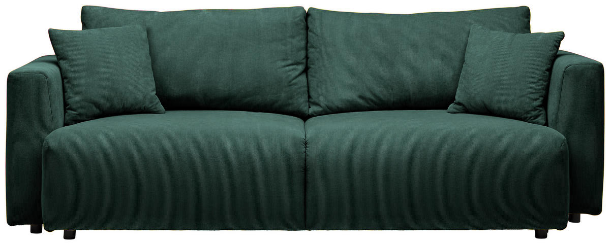 Wo eine ausgeglichene Life-Balance und häusliches Wohlempfinden gefragt sind, führt an diesem dunkelgrünen Schlafsofa mit Cord-Bezug kein Weg vorbei!